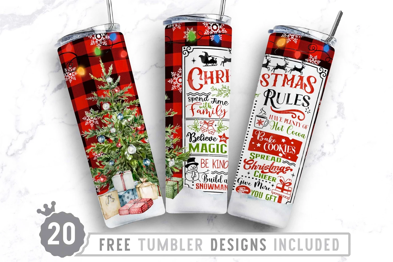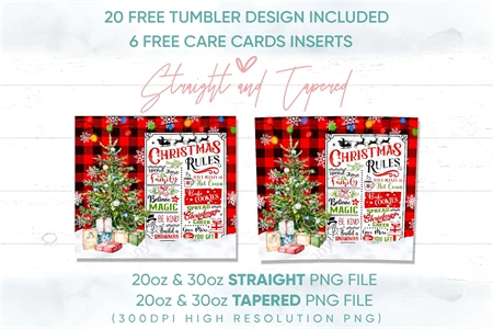 20oz Christmas Rules Skinny Tumbler Sublimation Png, Snow