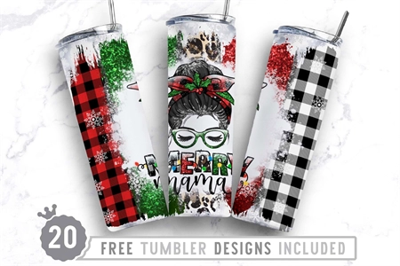 20oz Christmas Skinny Tumbler Sublimation, Straight Tapered