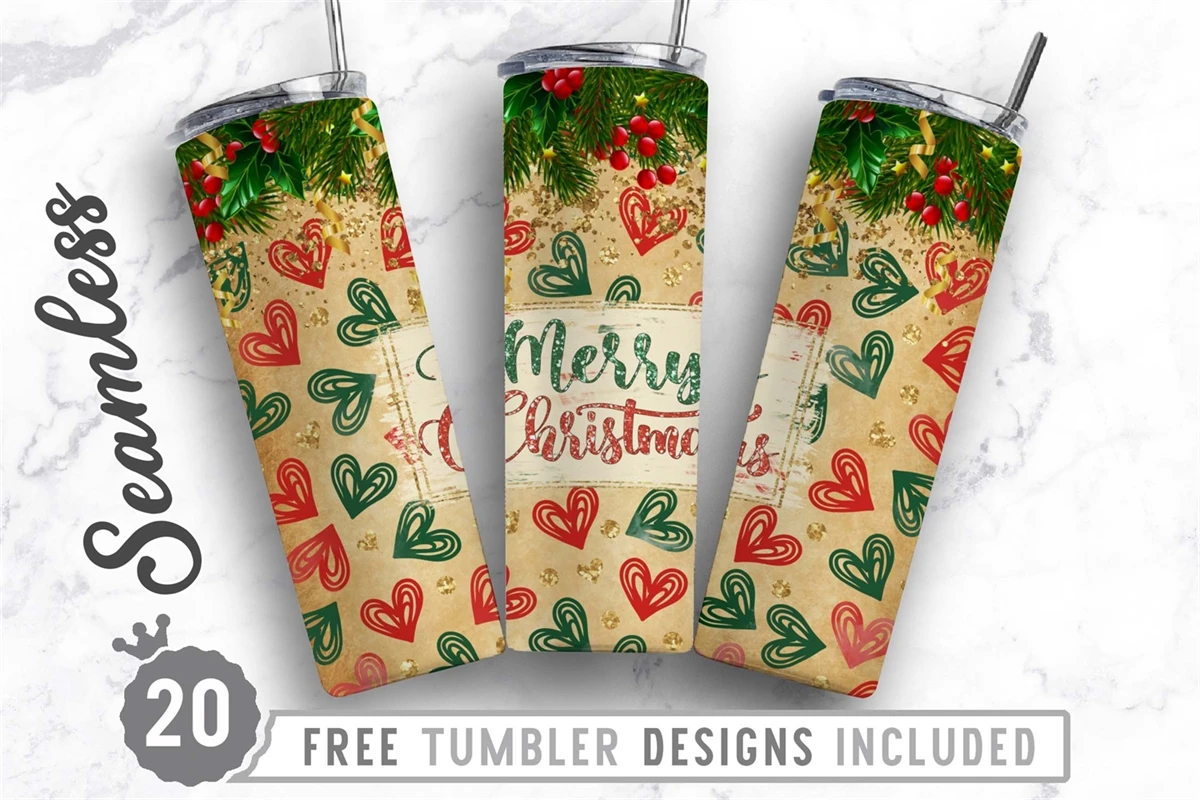 20oz Christmas Skinny Tumbler Sublimation, Straight Tapered