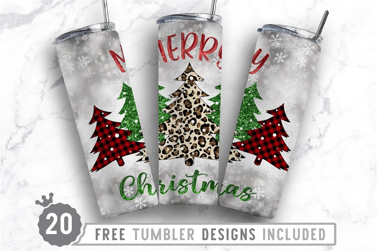 20oz Christmas Skinny Tumbler Sublimation, Straight Tapered
