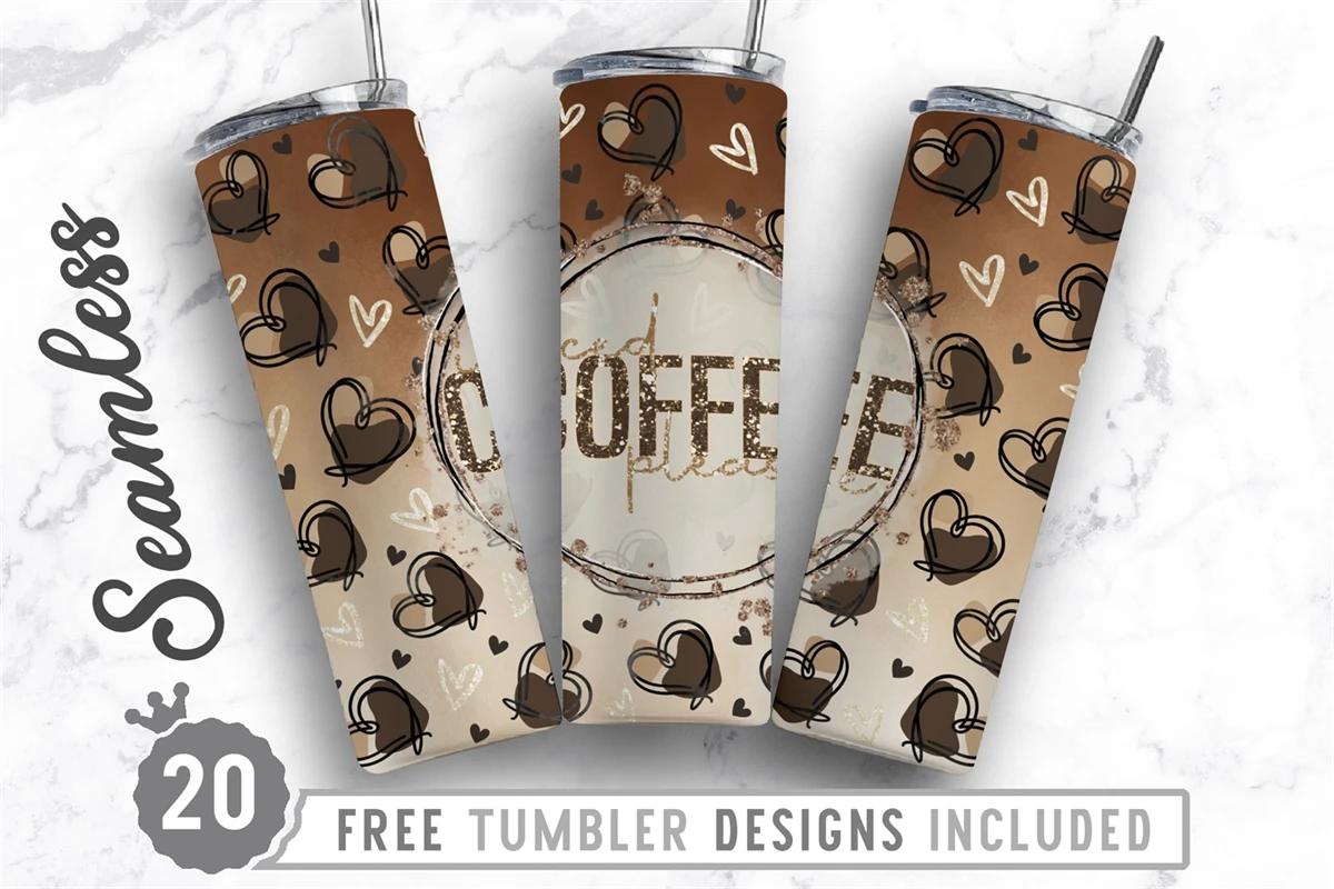 20oz Coffee Skinny Tumbler Sublimation Png, Straight Tapered