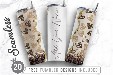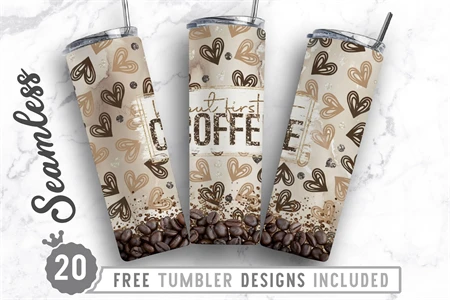 20oz Coffee Skinny Tumbler Sublimation Png, Straight Tapered