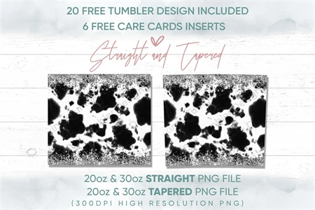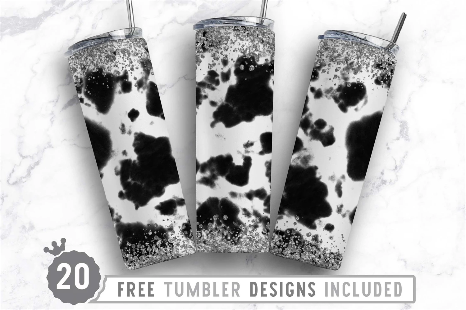 20oz Cow Print Skinny Tumbler Sublimation, Straight Tapered