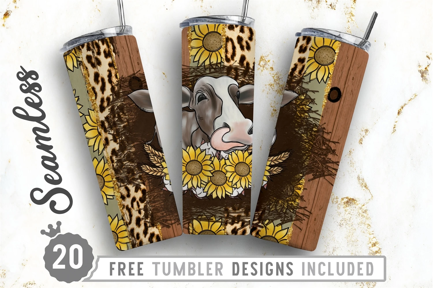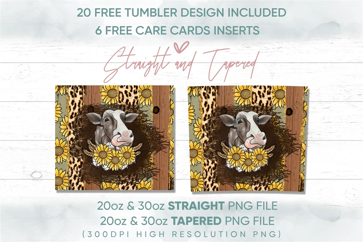 20oz Cow Skinny Tumbler Sublimation Png, Cow Png,Flowers Png