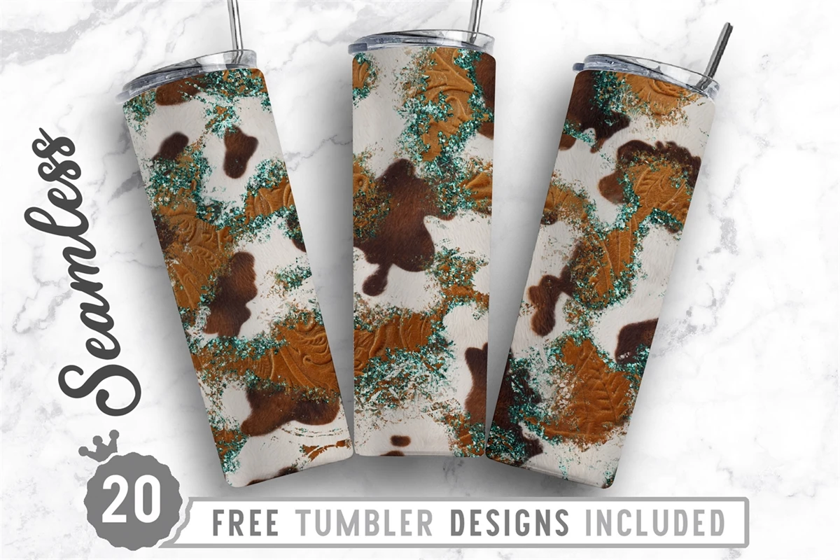 20oz Cow Skinny Tumbler Sublimation Png, Straight Tapered