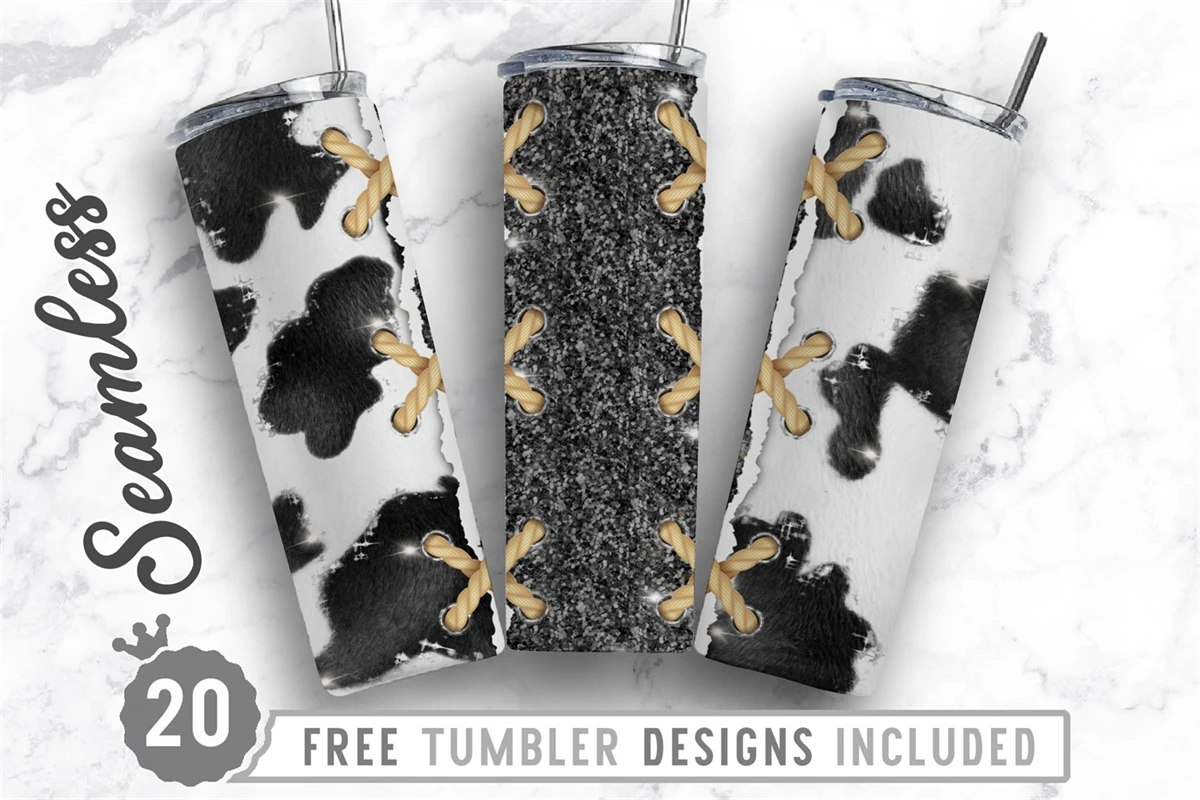 20oz Cow Skinny Tumbler Sublimation Png, Straight Tapered