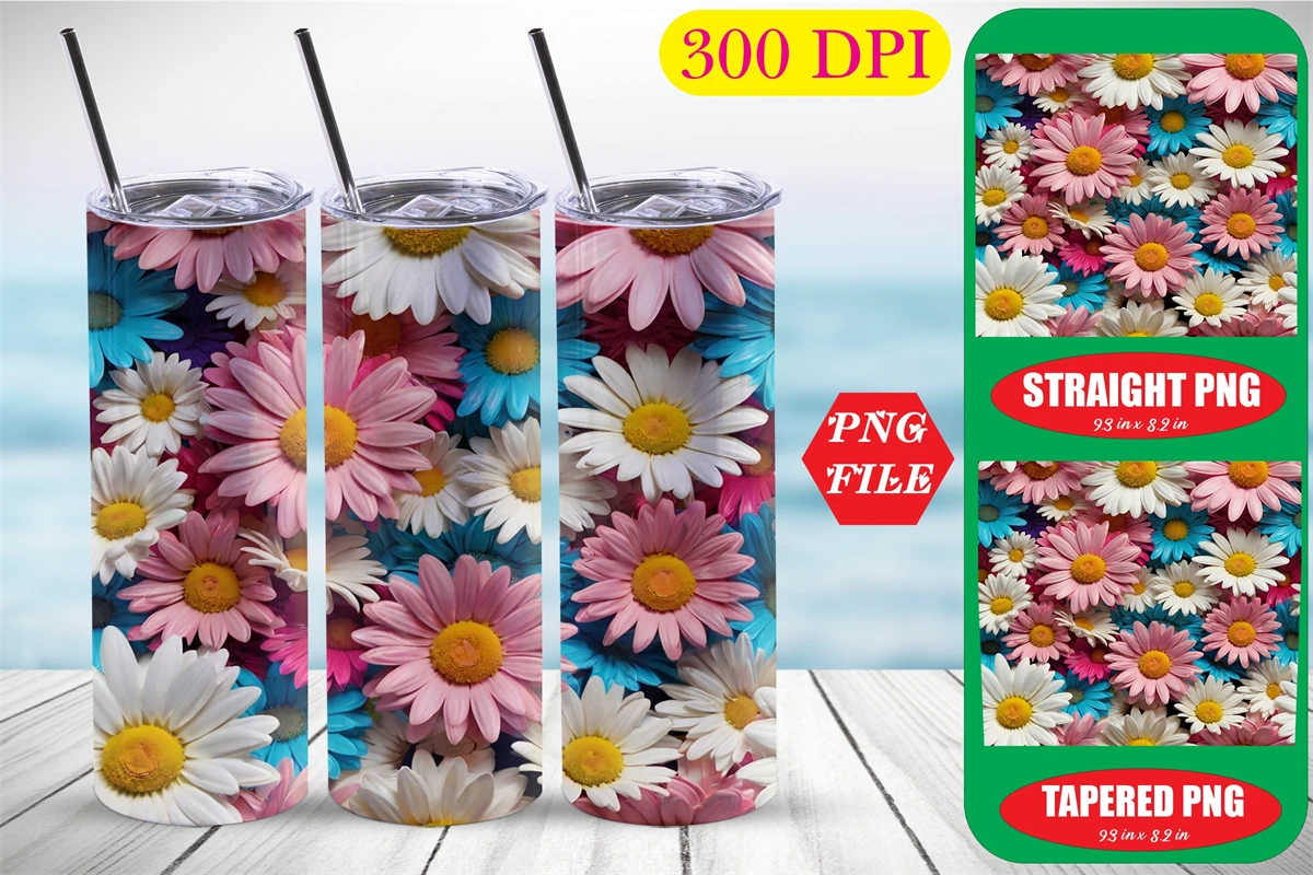20oz Daisy Flower Tumbler design PNG, Tumbler wrap design