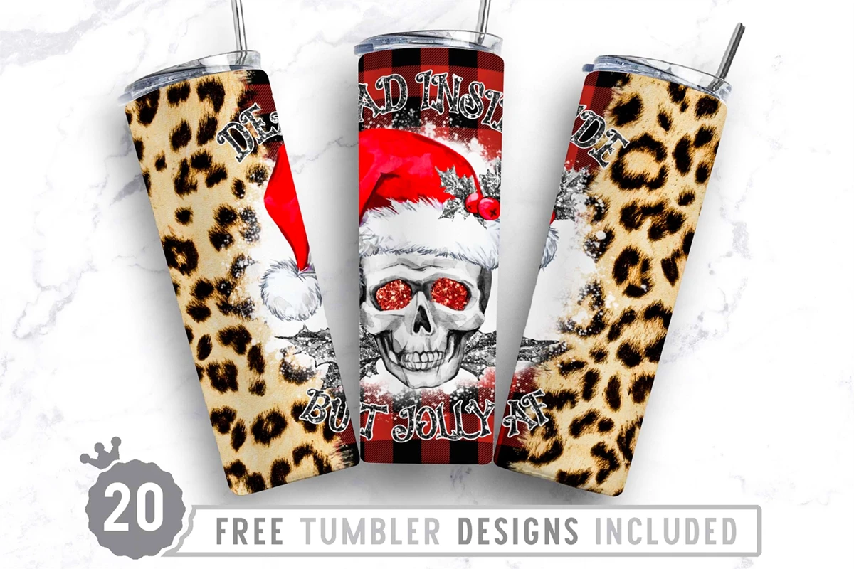 20oz Dead Inside But Jolly Af Skinny Tumbler Sublimation Png