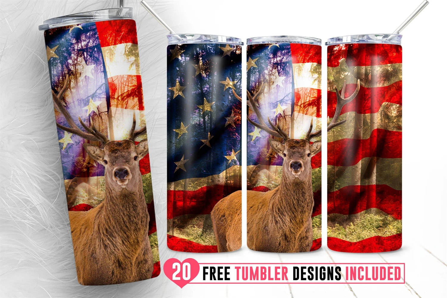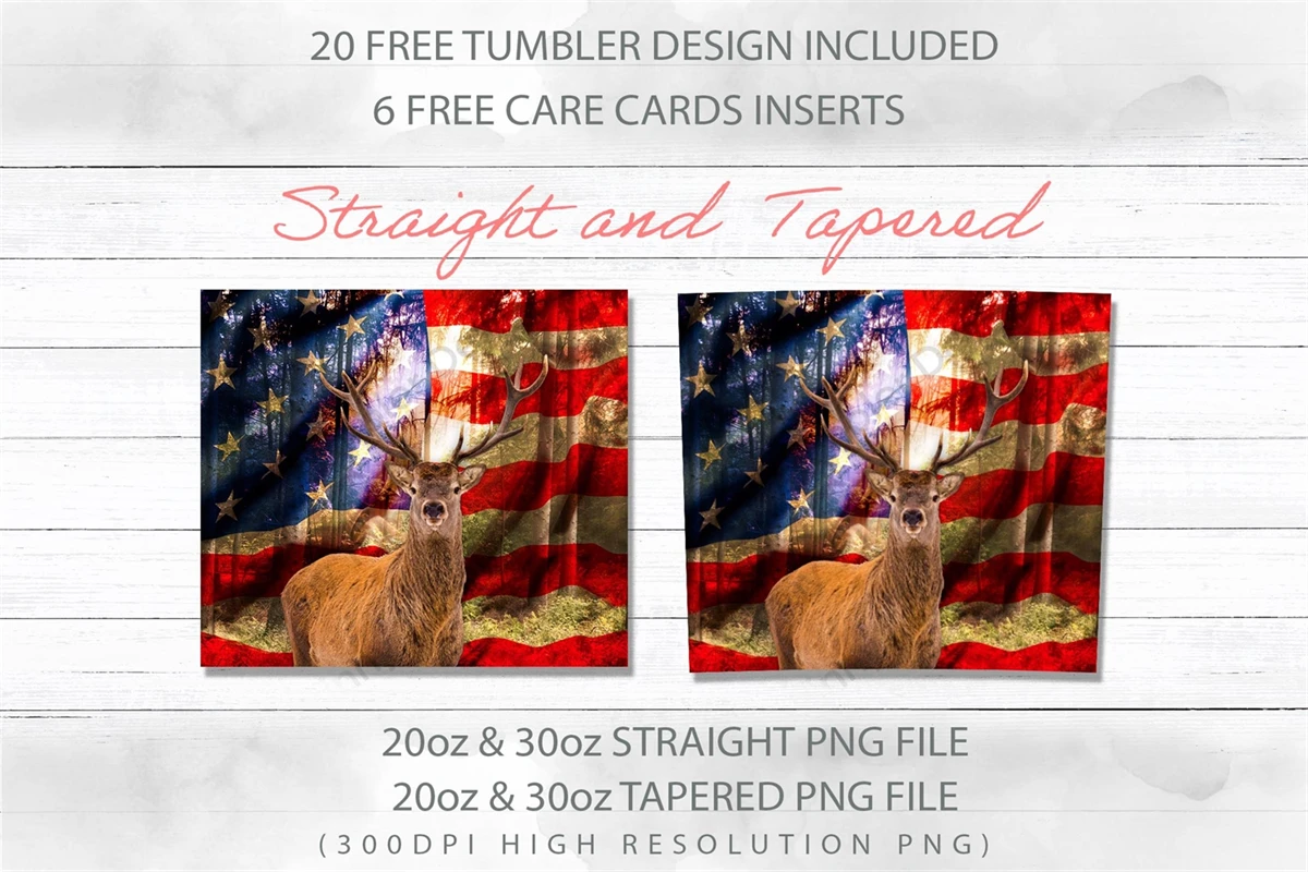 20oz Deer Hunting Skinny Tumbler Sublimation American Flag