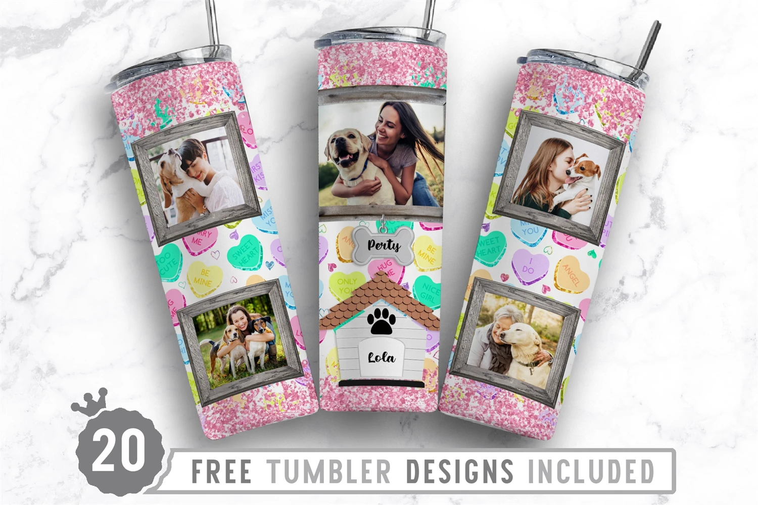 20oz Dog Lover Photo Frame Skinny Tumbler Sublimation Png
