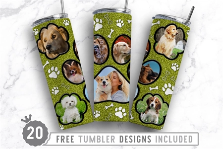 20oz Dog Lover Photo Frame Skinny Tumbler Sublimation Png