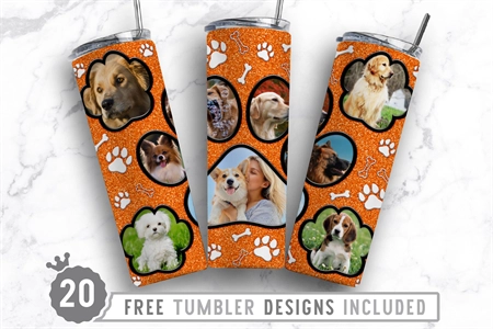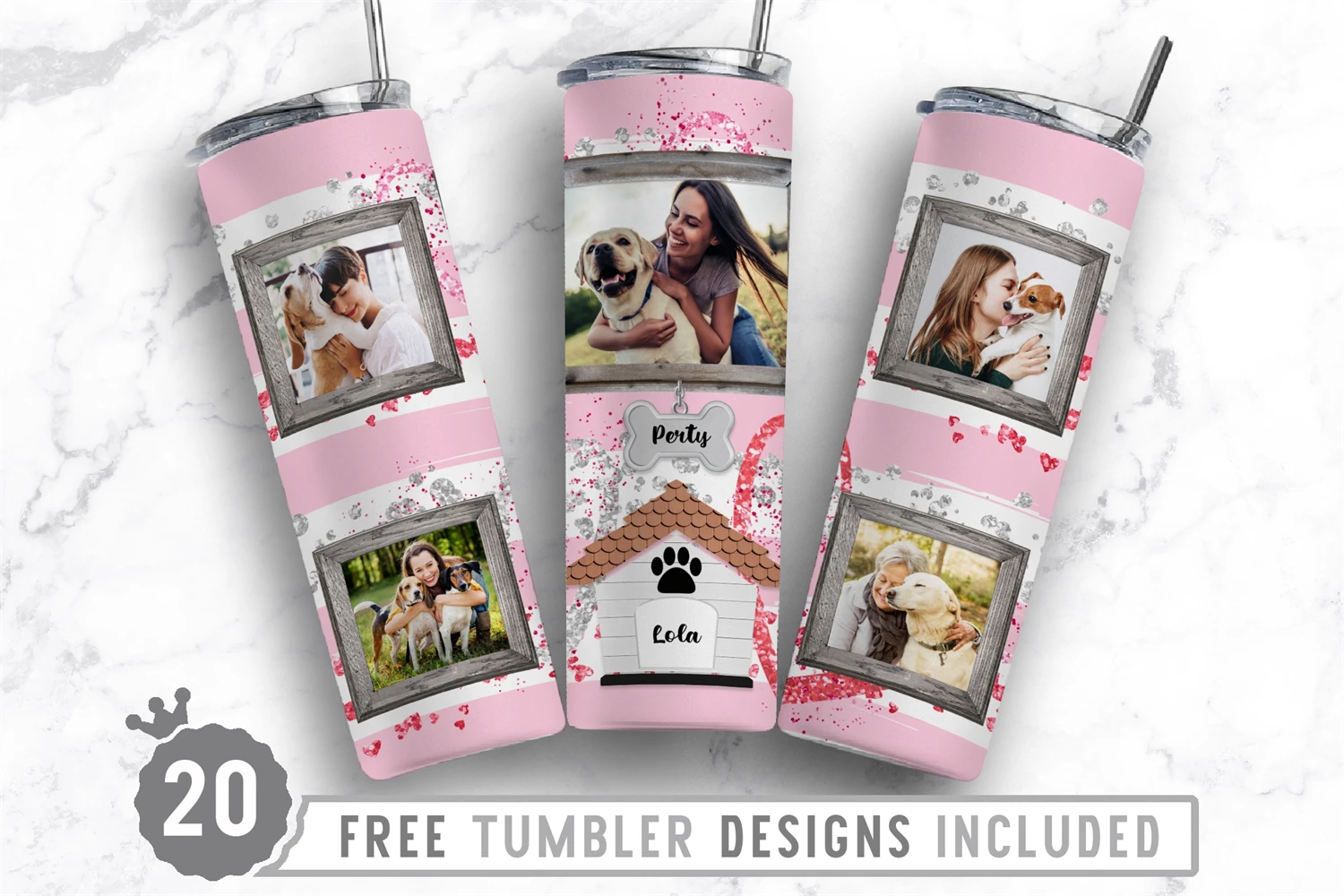 20oz Dog Lover Photo Frame Skinny Tumbler Sublimation Png