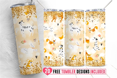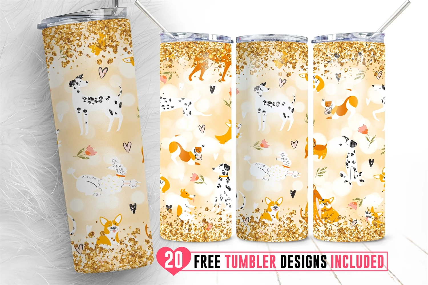 20oz Dog Skinny Tumbler Sublimation Png, Animal Design, Dogs