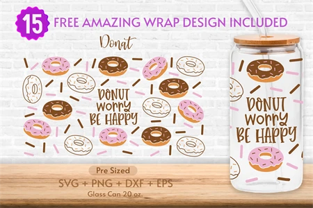 20oz Donut Libbey Glass Can Svg, Pear Glass Can Wrap Svg