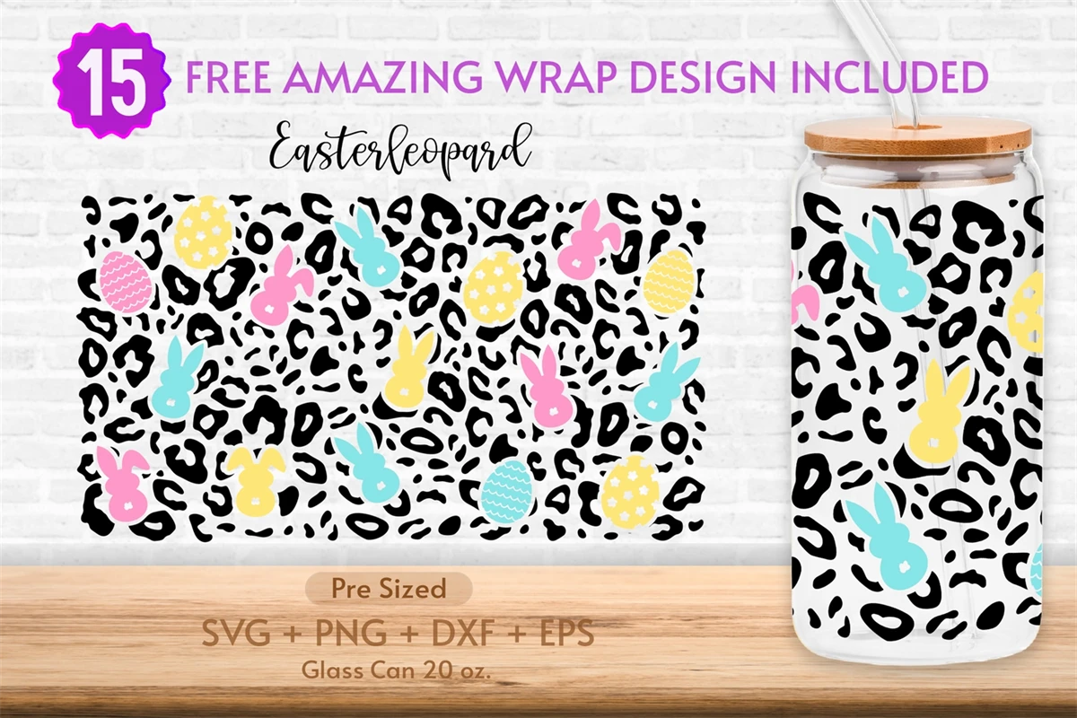 20oz Easter Leopard Libbey Glass Can Svg,Glass Can Full Svg