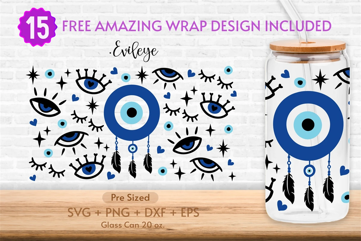 20oz Evil Eyes Libbey Glass Can Svg, Evil Eye Glass Can