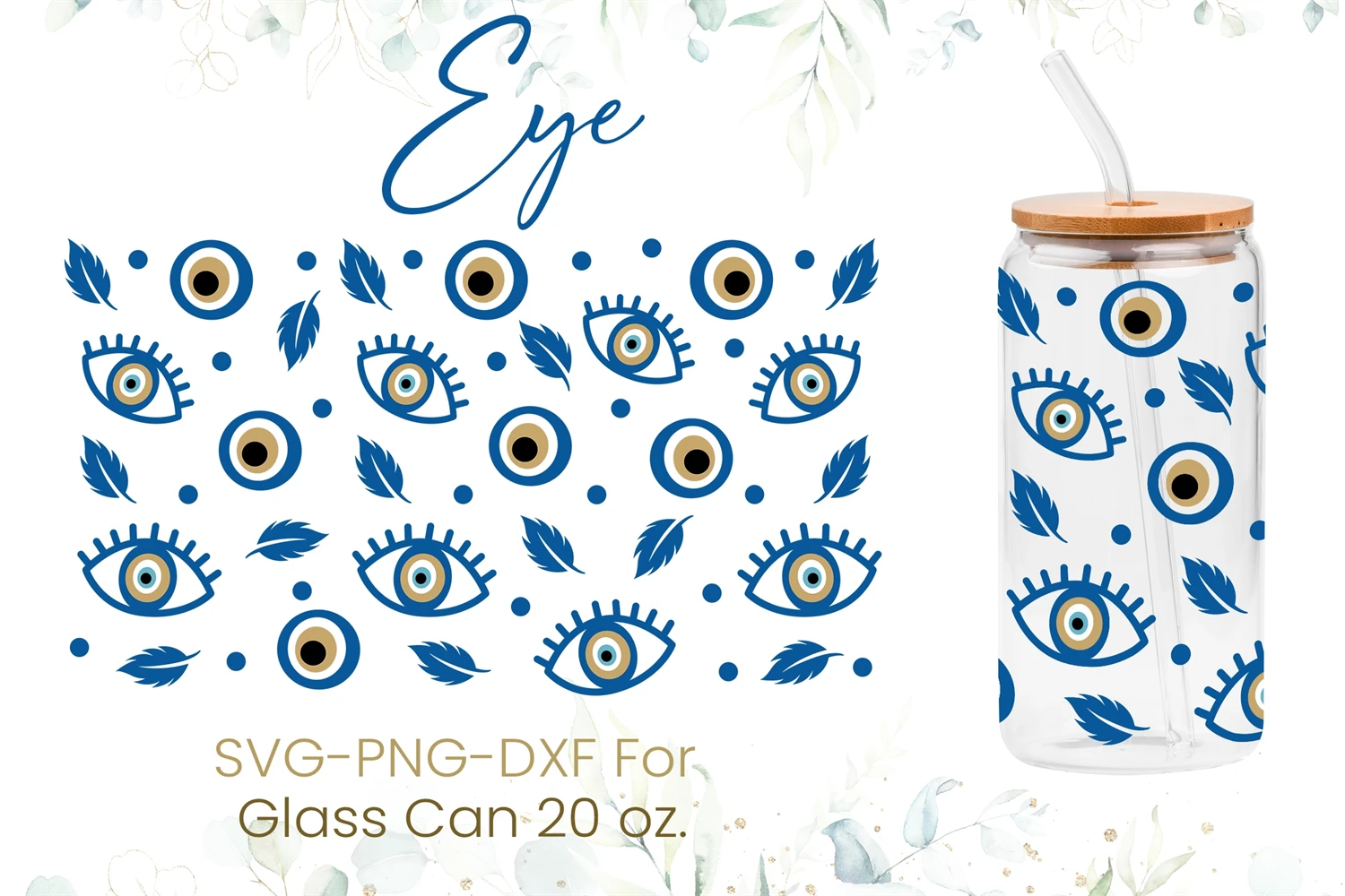 20oz Evil Eyes Libbey Glass Can Svg,Evil Eye Glass Can Wrap