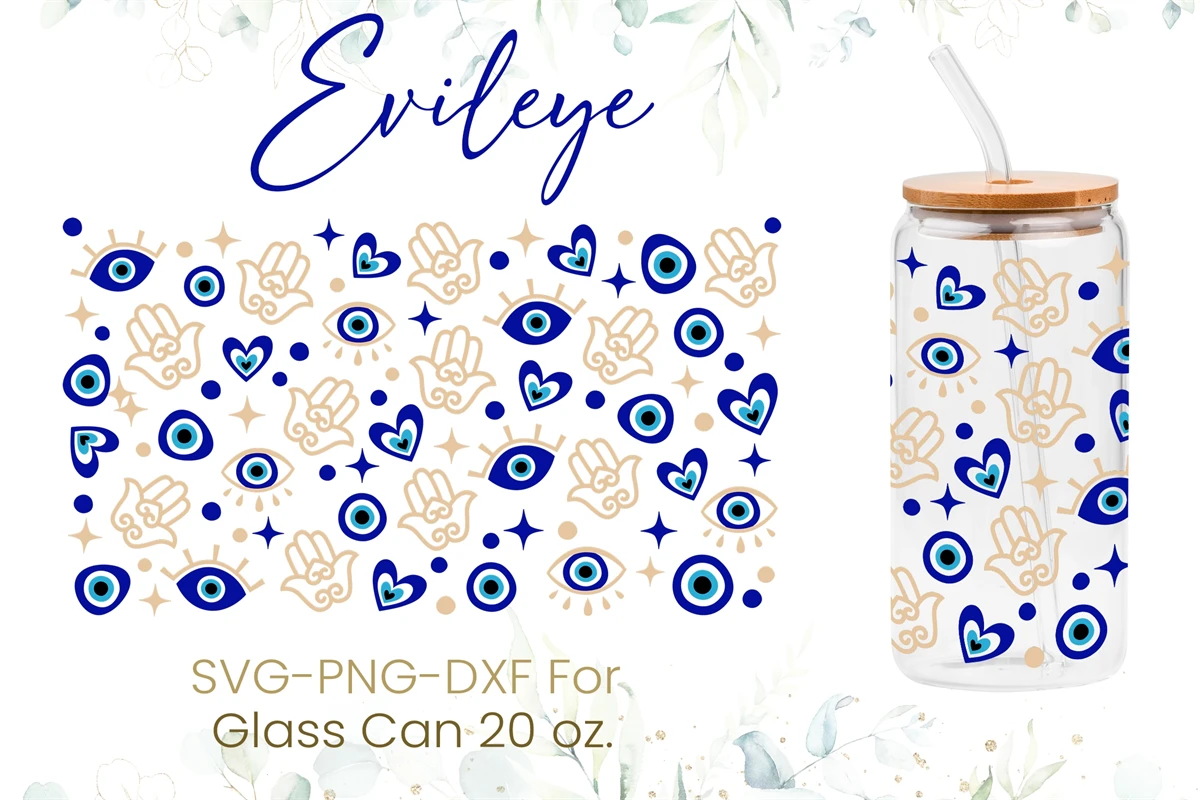 20oz Evil Eyes Libbey Glass Can Svg,Evil Eye Glass Can Wrap