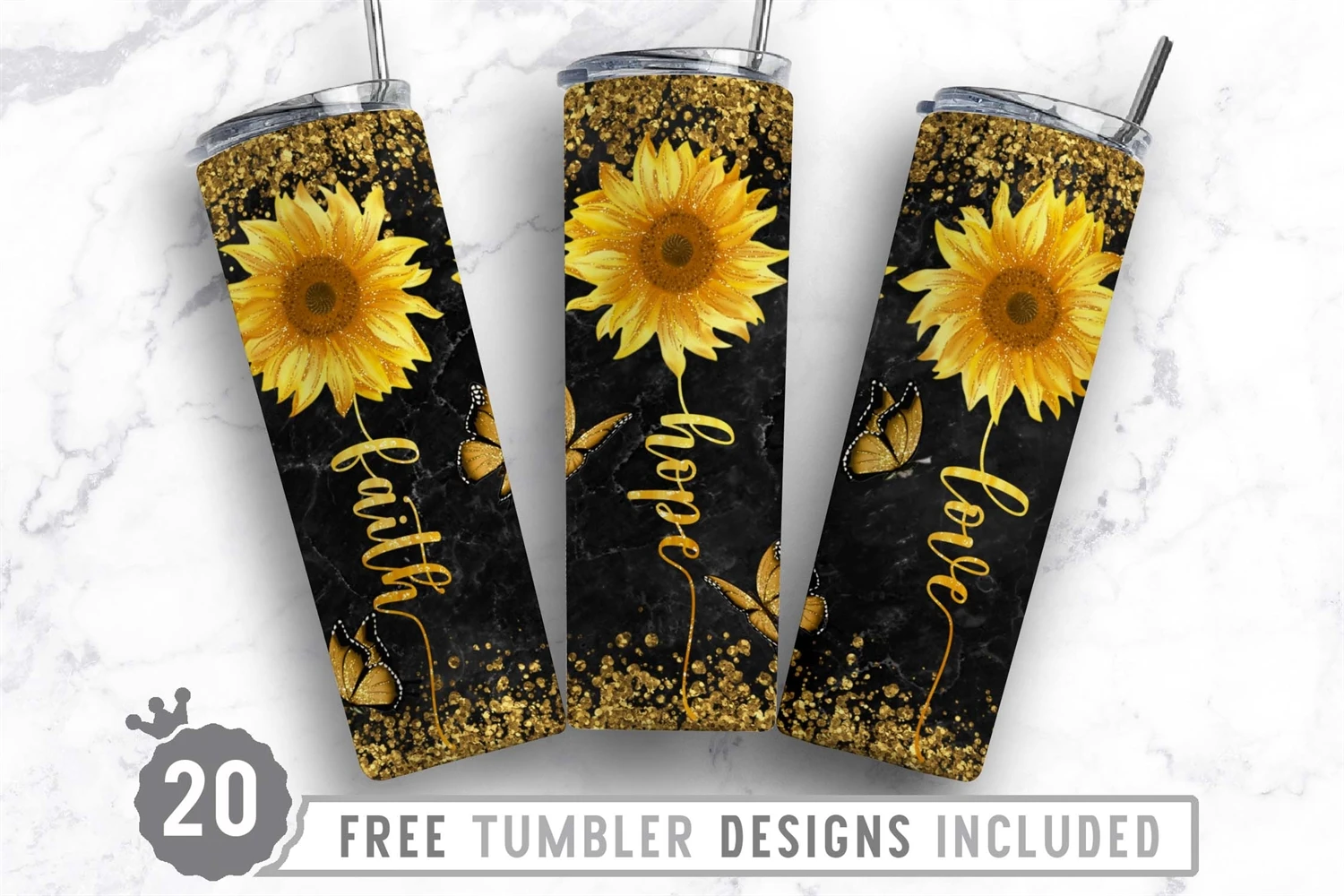 20oz Faith Skinny Tumbler Sublimation Png, Straight Tapered