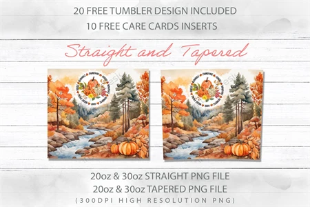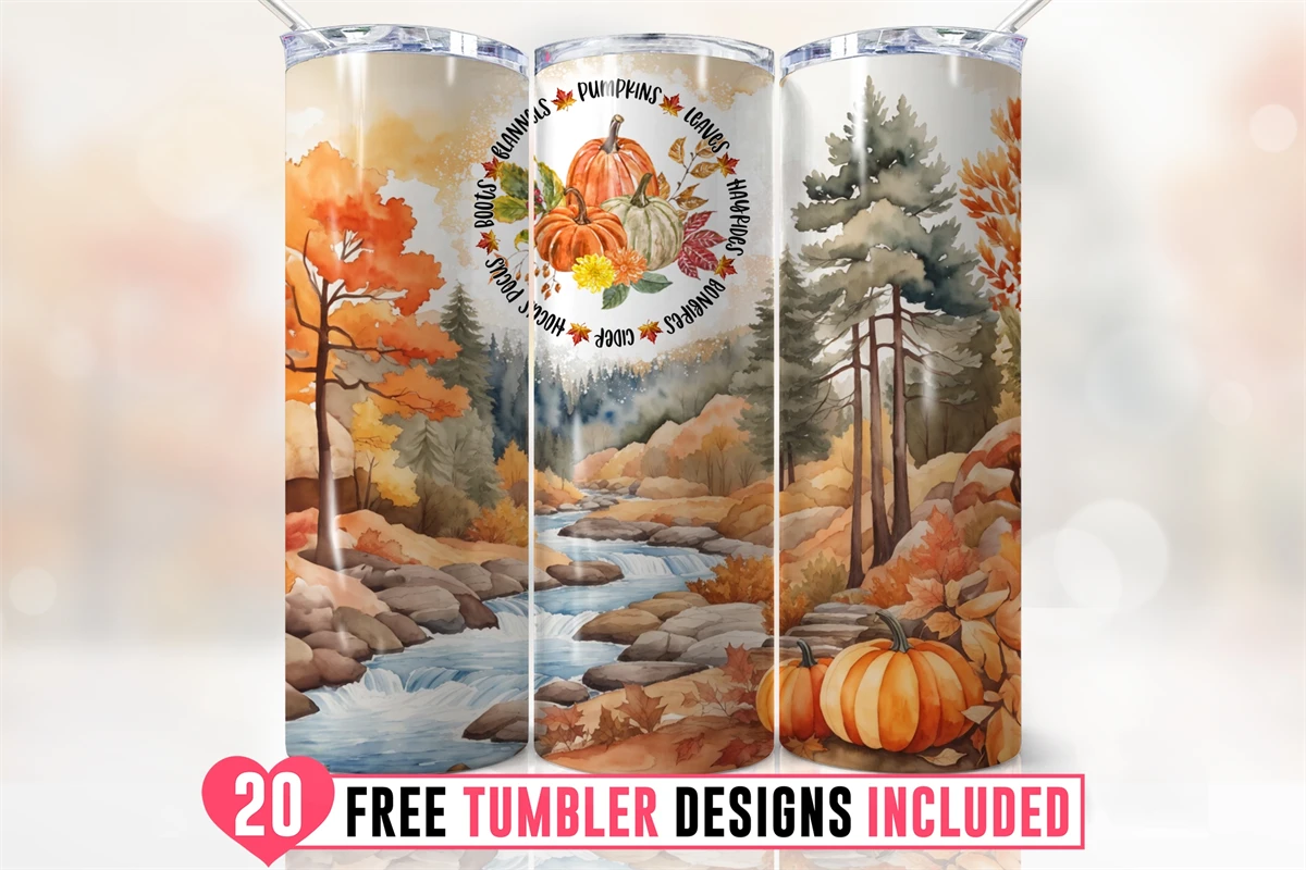 20oz Fall Autumn Forest Skinny Tumbler Wrap Png, Pumpkin