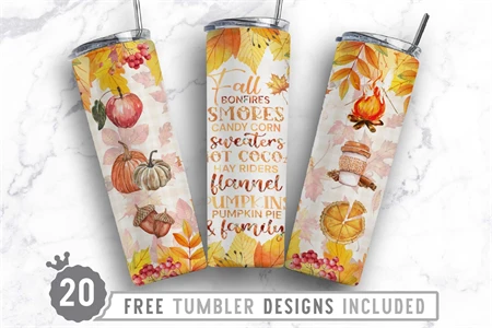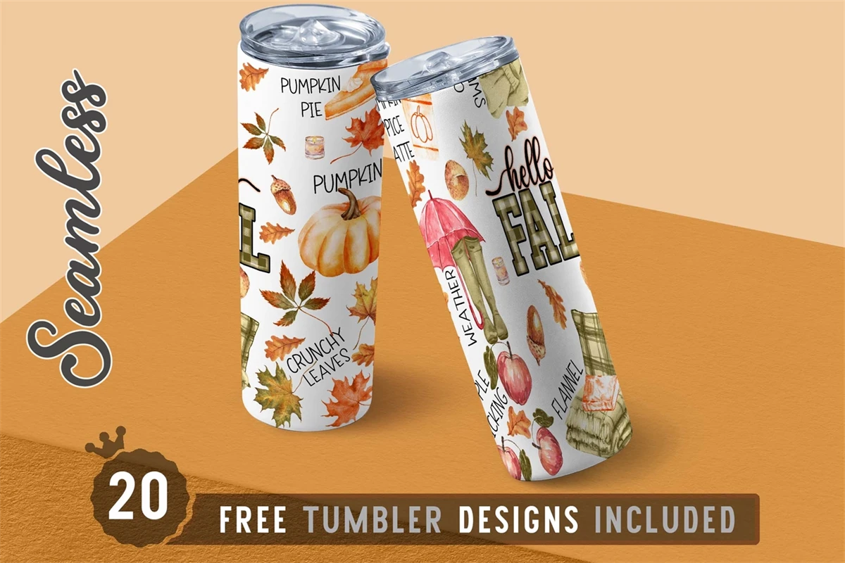 20oz Fall Skinny Tumbler Sublimation Png, Straight Tapered