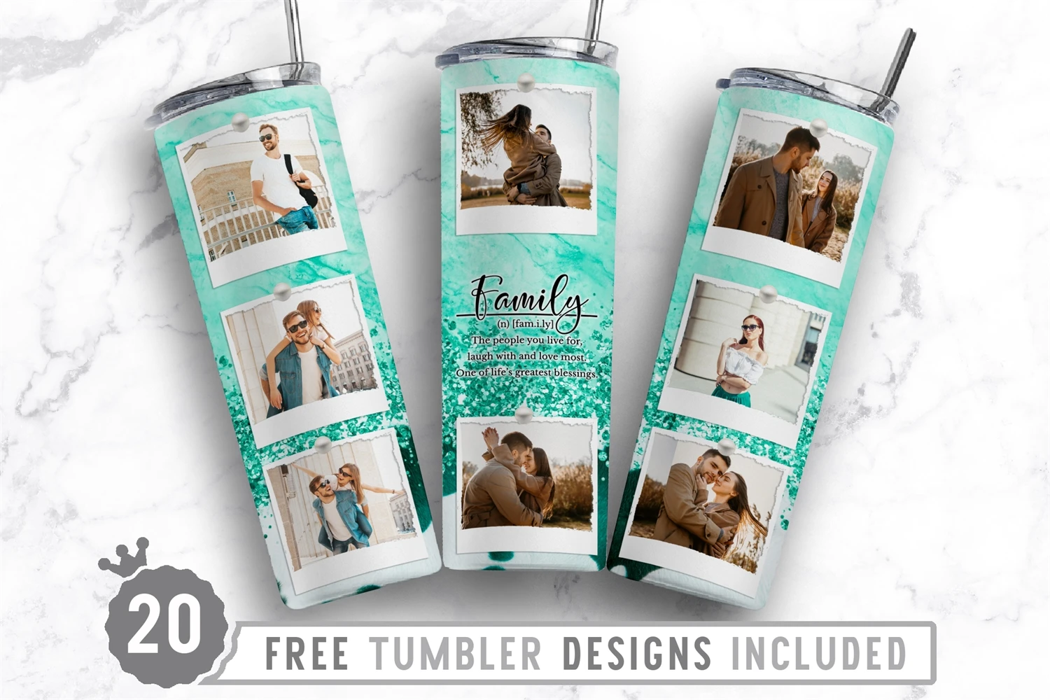 20oz Family Photo Frame Skinny Tumbler Sublimation Picture