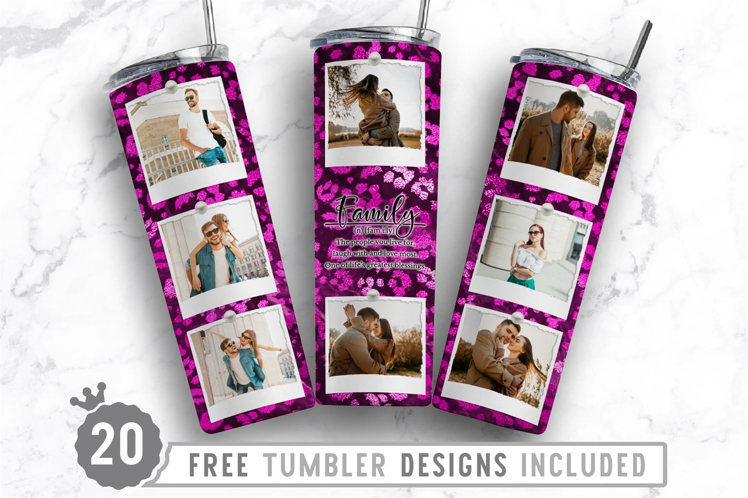 20oz Family Photo Frame Skinny Tumbler Sublimation Picture