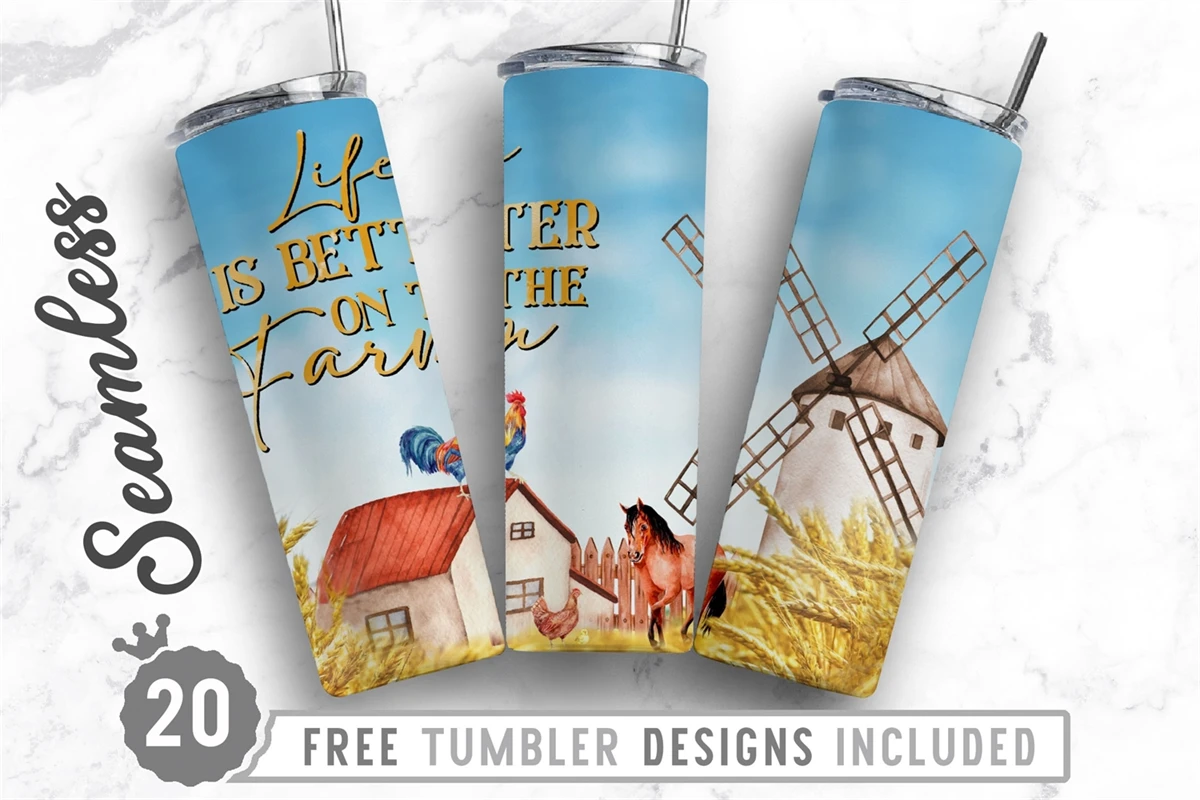 20oz Farm Skinny Tumbler Sublimation Png, Straight Tapered