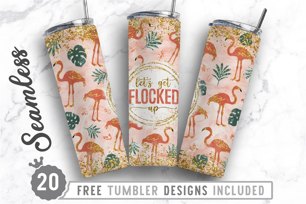 20oz Flamingo Skinny Tumbler Sublimation, Straight Tapered