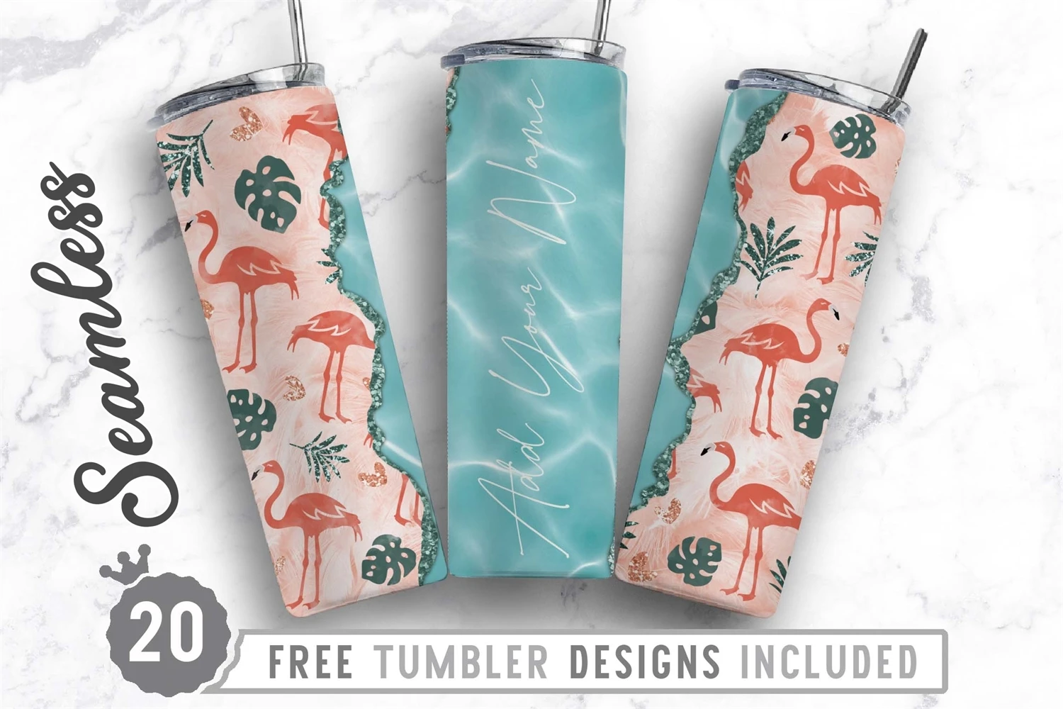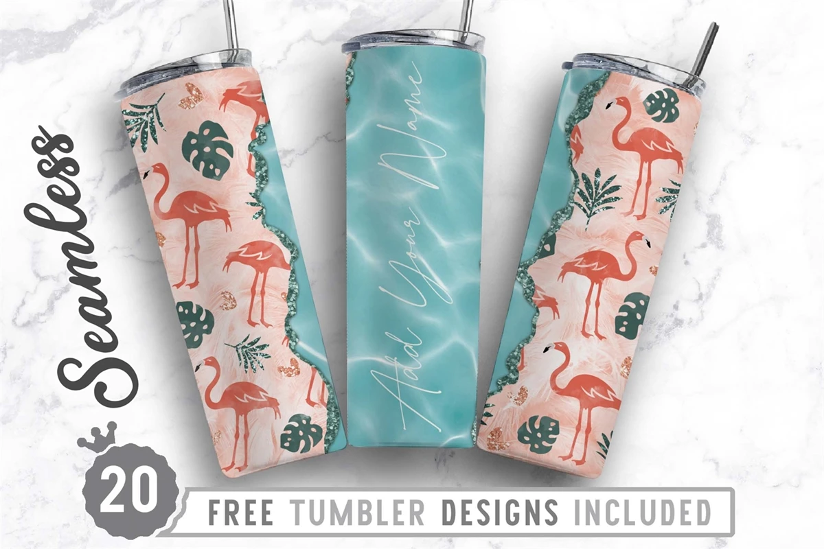 20oz Flamingo Skinny Tumbler Sublimation, Straight Tapered