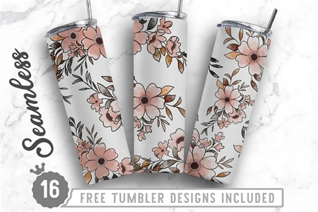 20oz Flowers Skinny Tumbler Sublimation, Straight Tapered