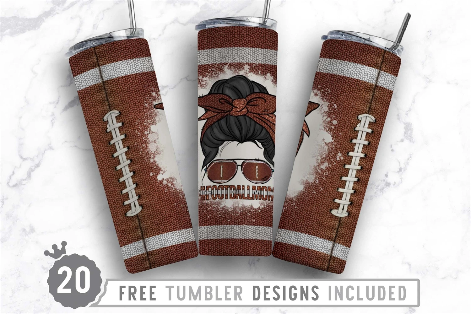 20oz Football Skinny Tumbler Sublimation , Straight Tapered