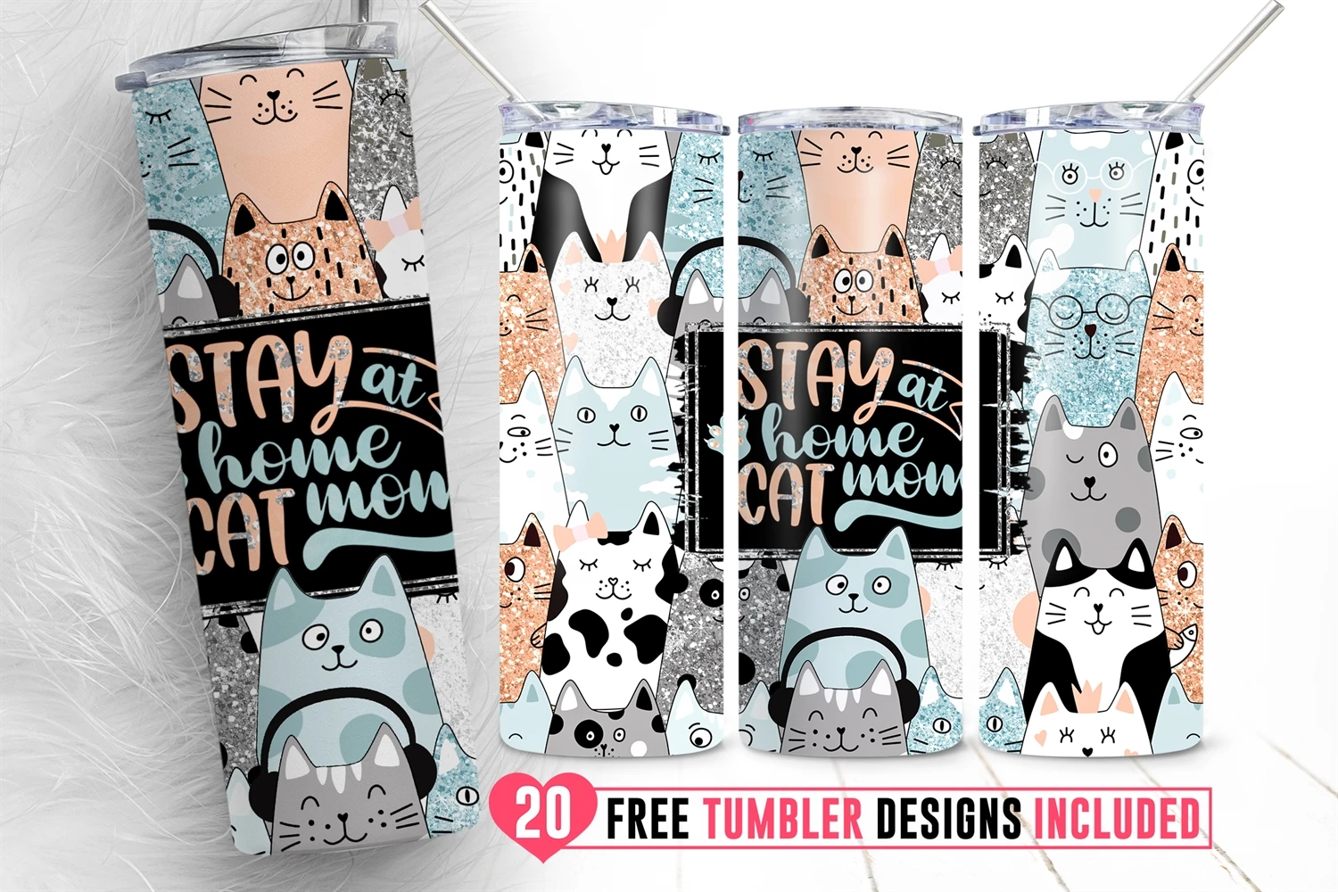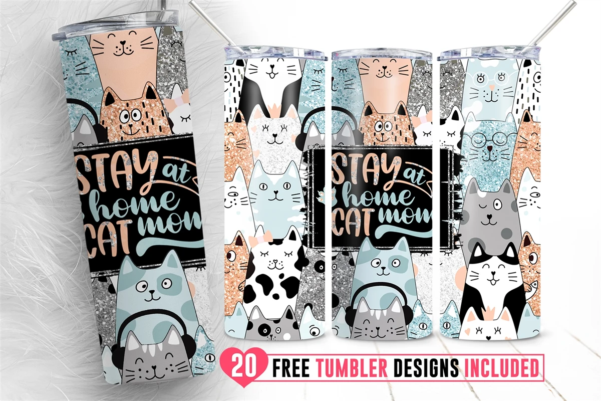 20oz Funny Cat Mom Skinny Tumbler Sublimation Png, Cat Lover