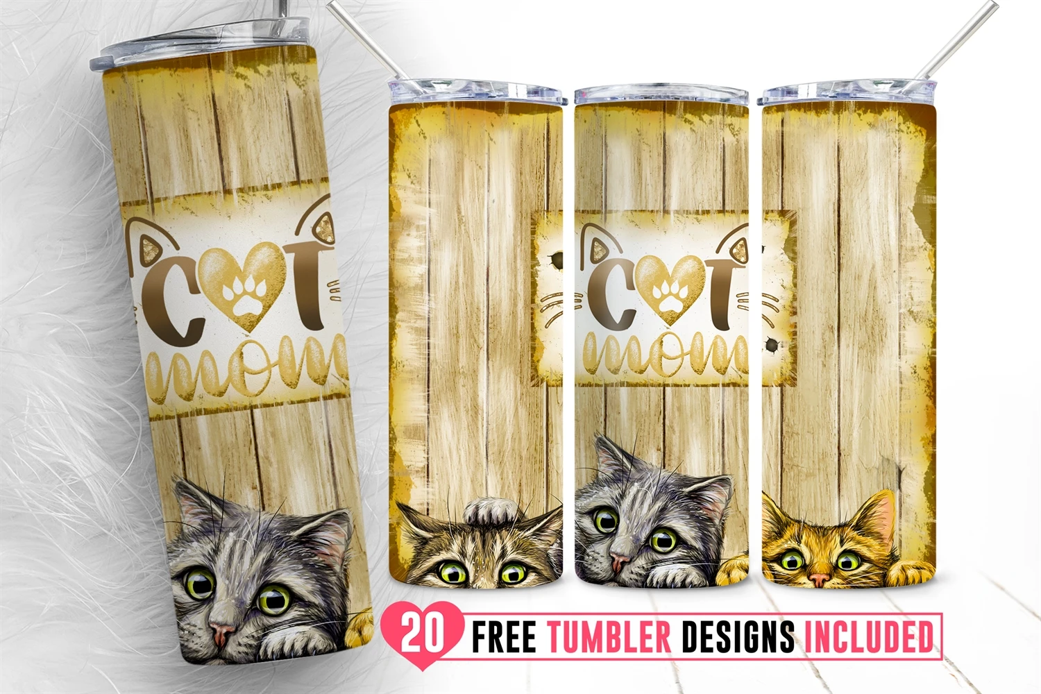 20oz Funny Cat Mom Skinny Tumbler Sublimation Png, Mom Life