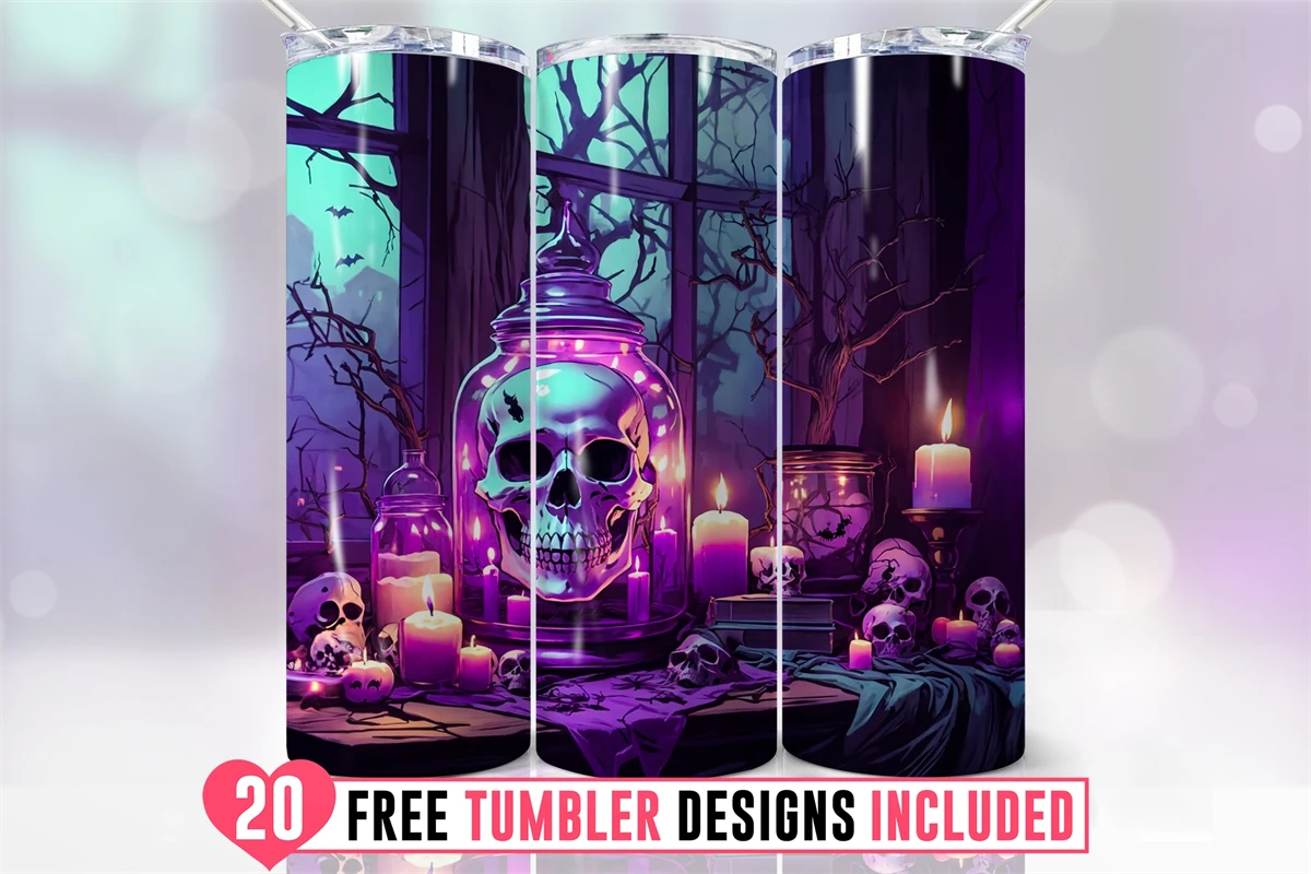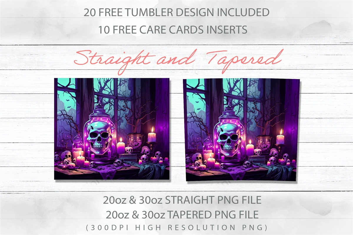 20oz Gas lamp Skull Skinny Tumbler Wrap, Halloween, Candle