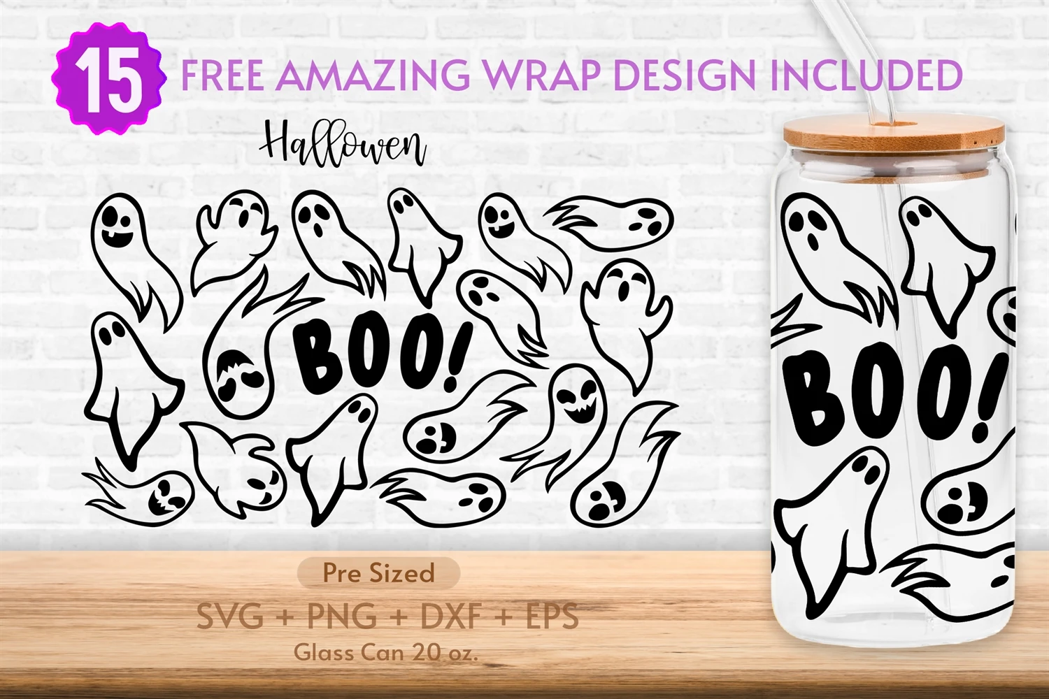 20oz Ghost Libbey Glass Can Svg, Pumpkin, Ghost, Boo, Spooky