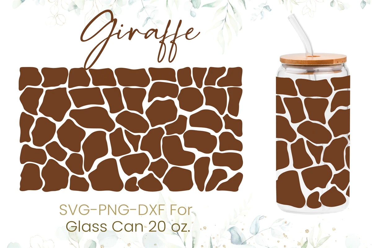 20oz Giraffe Pattern Libbey Glass Can Svg, Giraffe Print Svg