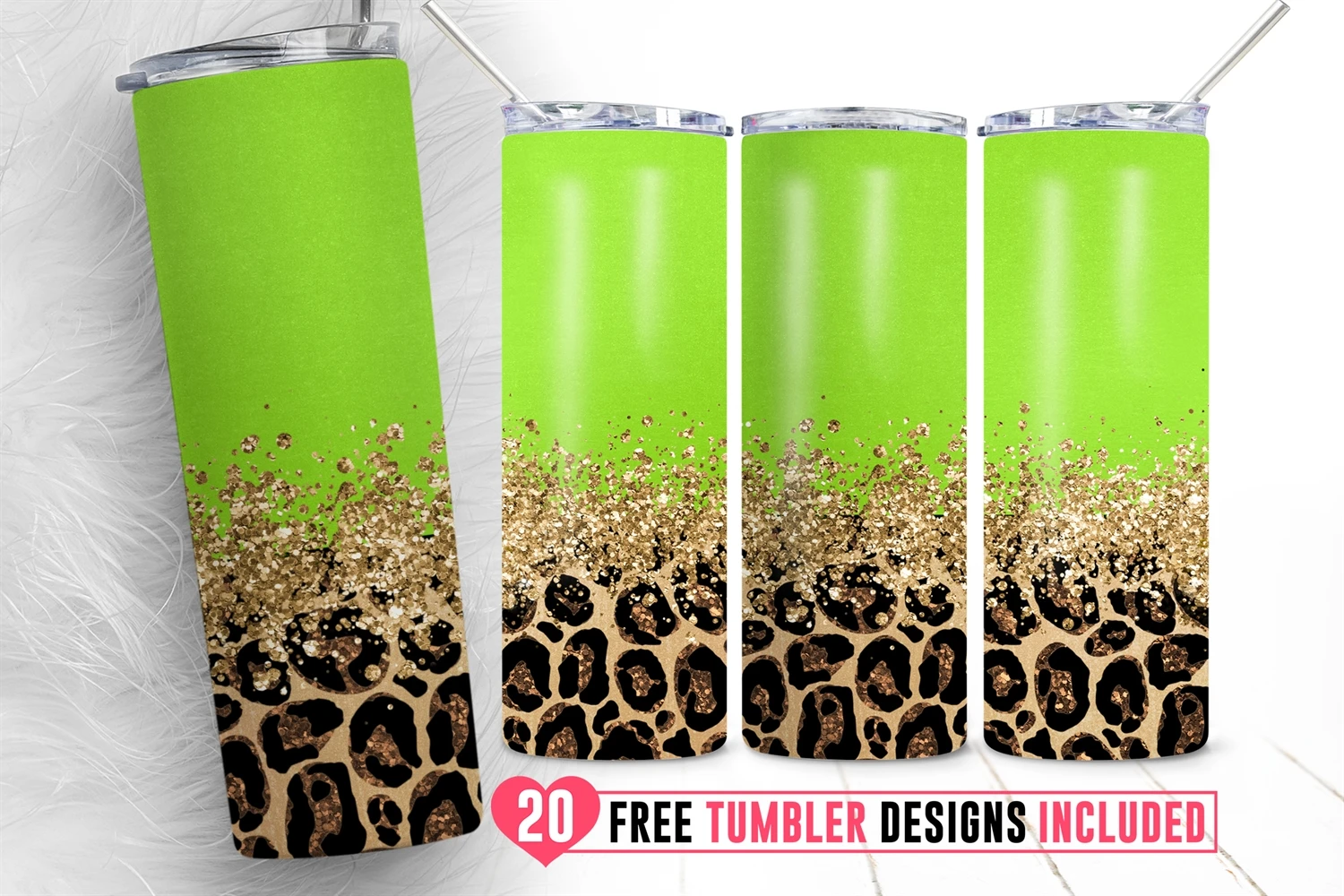 20oz Glitter Marble Skinny Tumbler Leopard Glitter Animal