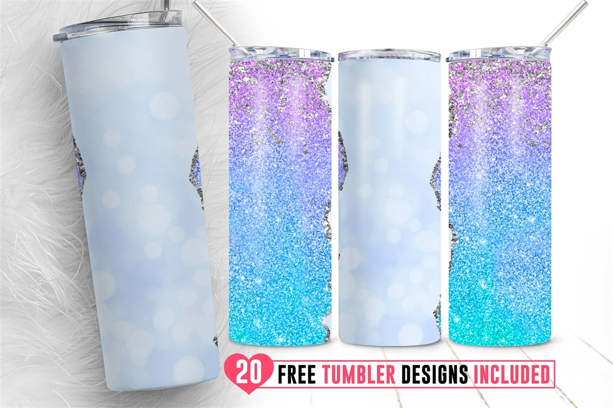 20oz Glitter Marble Skinny Tumbler Sublimation Png, Glitter