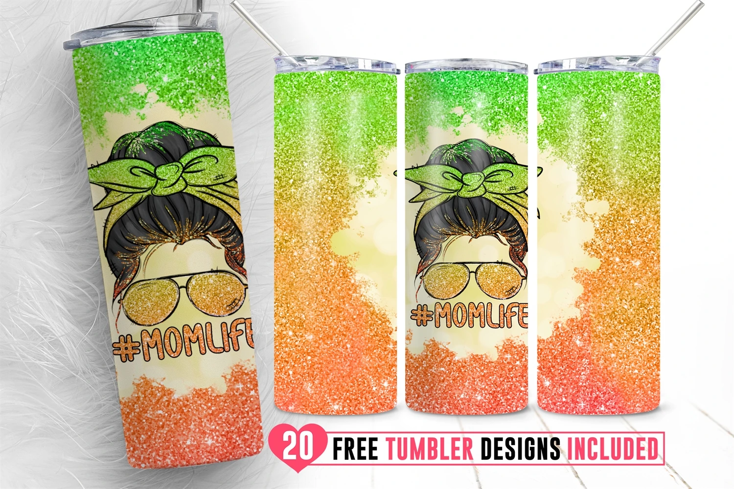 20oz Glitter Mom Life Messy Bun Skinny Tumbler Sublimation