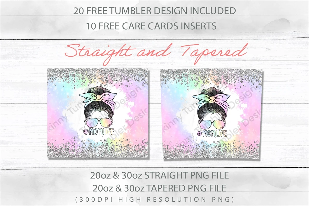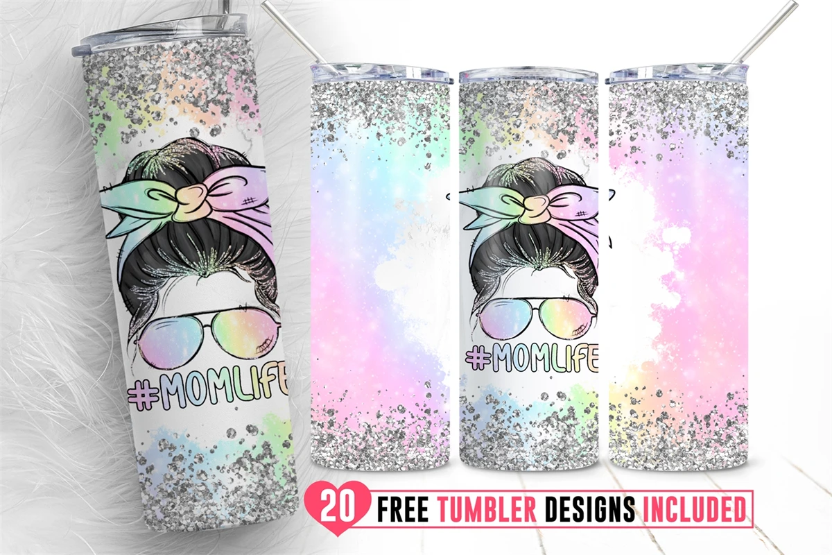 20oz Glitter Mom Life Messy Bun Skinny Tumbler Sublimation