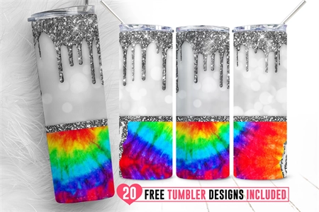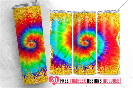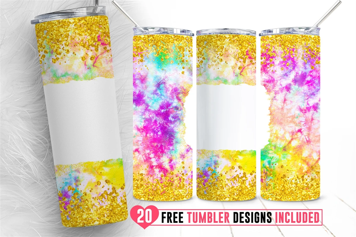 20oz Glitter Rainbow Tie Dye Skinny Tumbler Sublimation Png