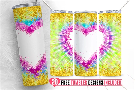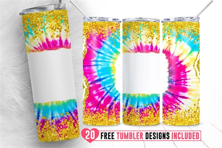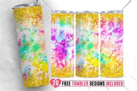 20oz Glitter Rainbow Tie Dye Skinny Tumbler Sublimation Png