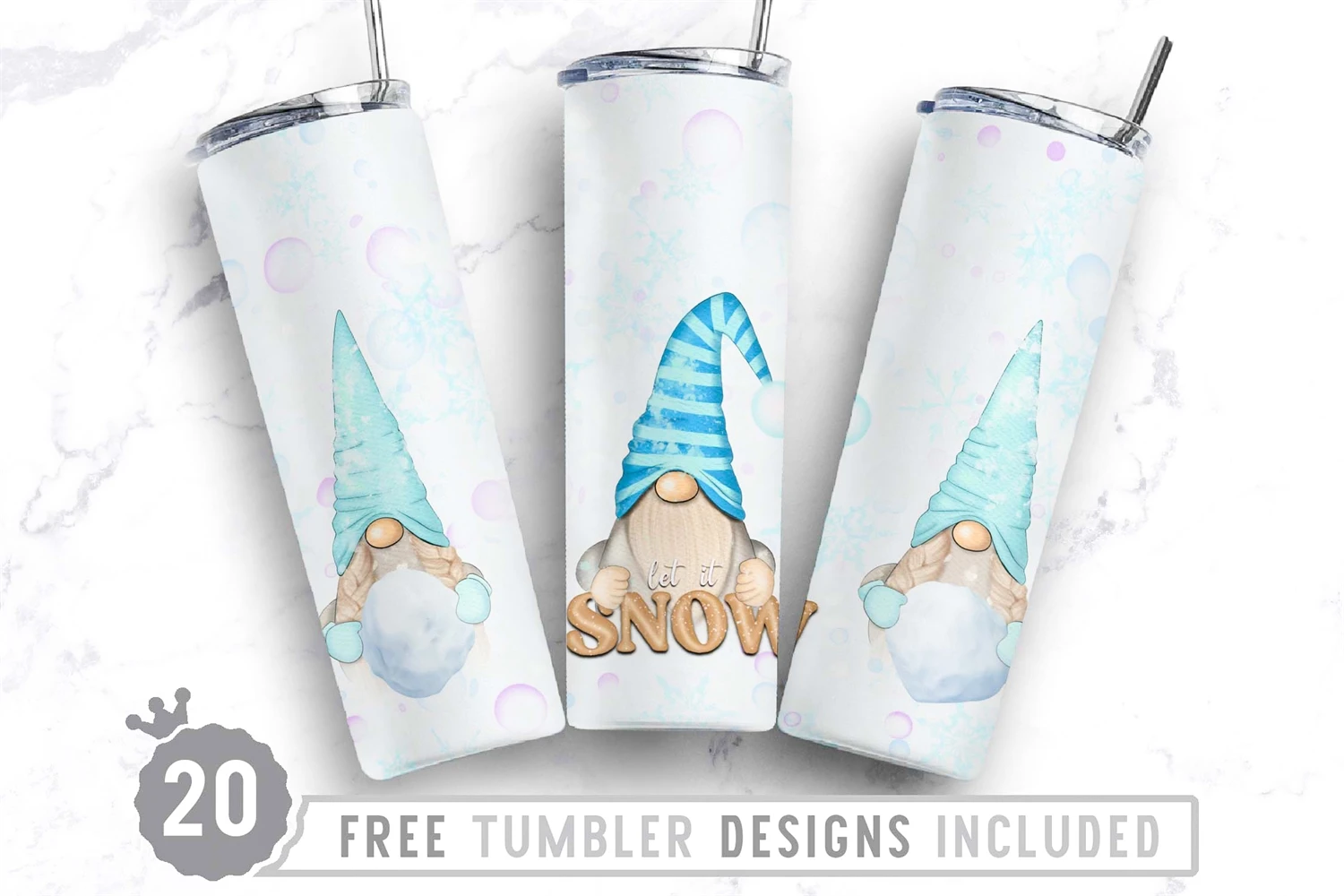 20oz Gnome Let is Snow Skinny Tumbler Sublimation Png, Xmas
