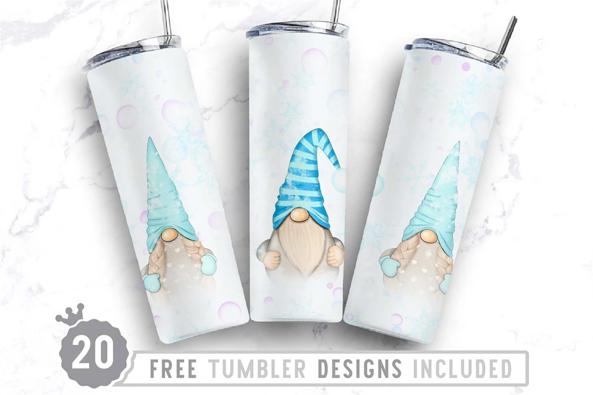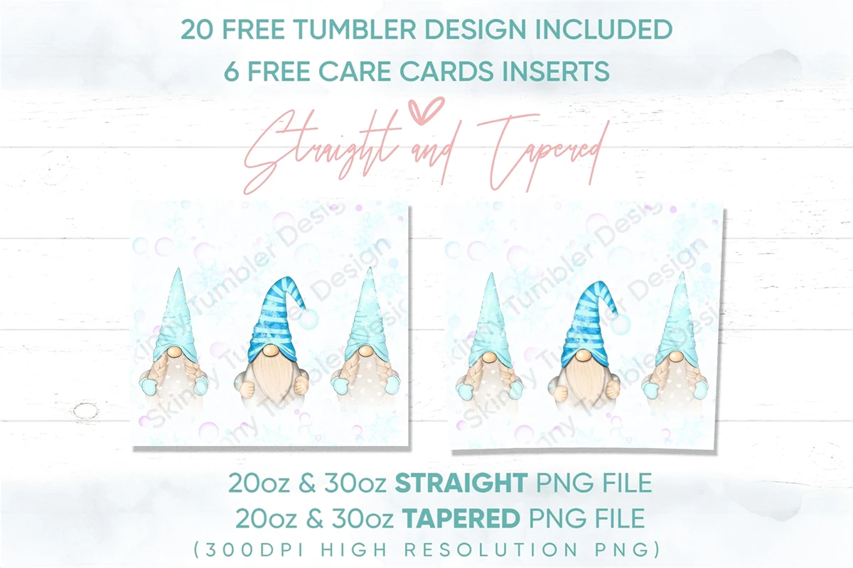 20oz Gnome Snow Skinny Tumbler Sublimation Png, Merry Bright