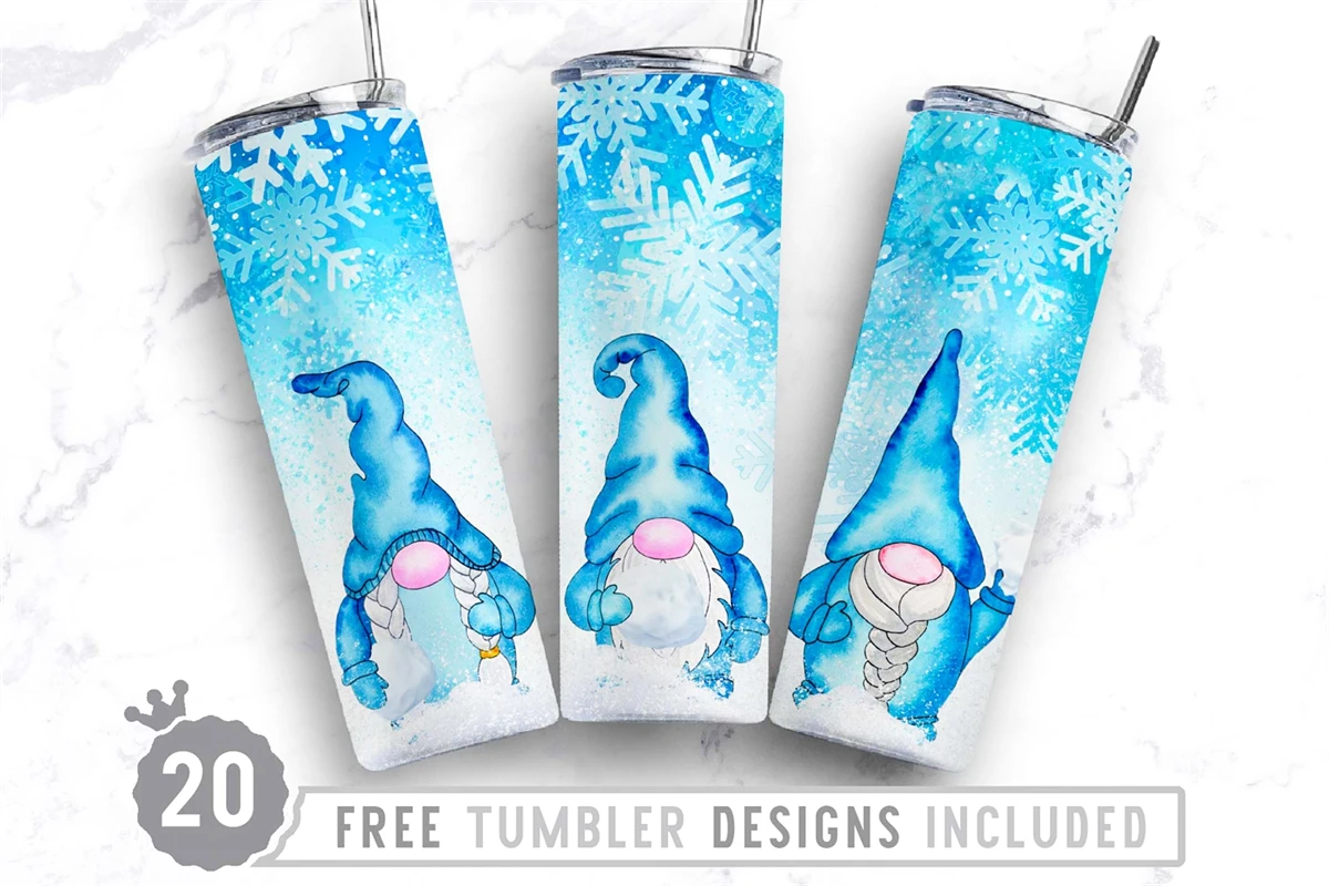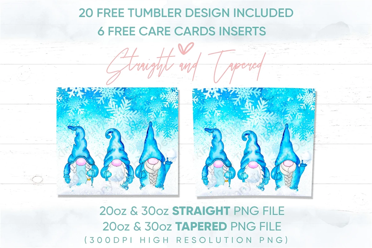 20oz Gnome Snow Skinny Tumbler Sublimation Png, Snowflake