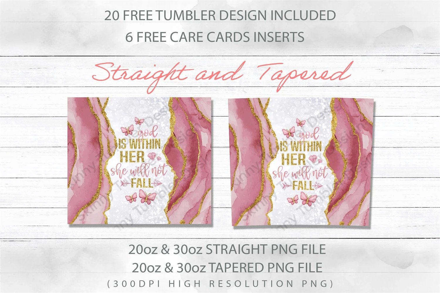 20oz God is Within Her She will not Fall Skinny Tumbler Png