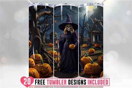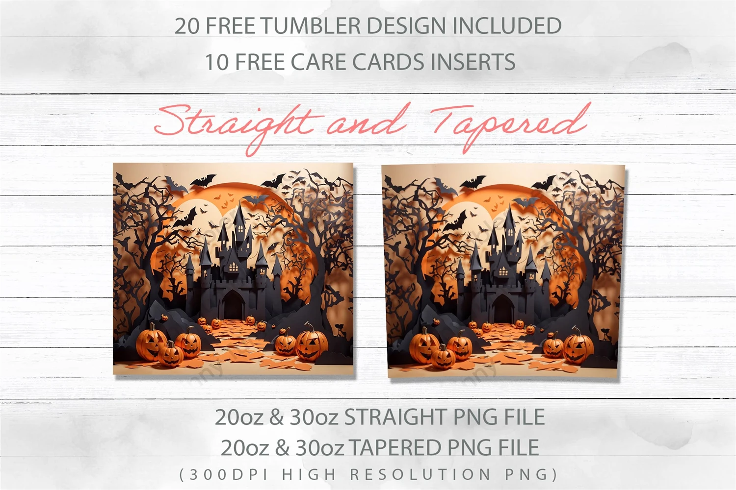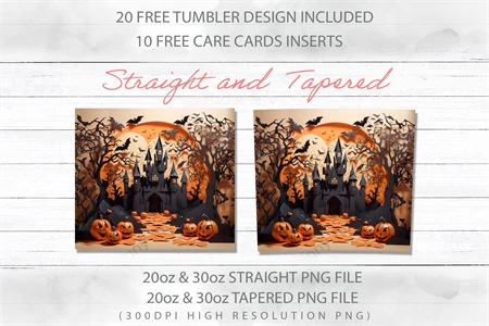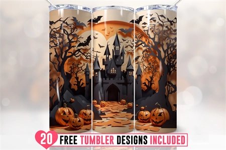 20oz Halloween Castle Pumpkin Skinny Tumbler Wrap Png, Bat