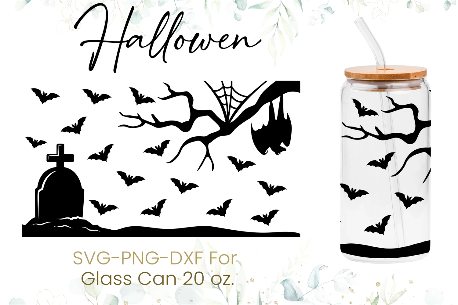 20oz Halloween Libbey Glass Can Svg, Fall Glass Can Wrap Svg