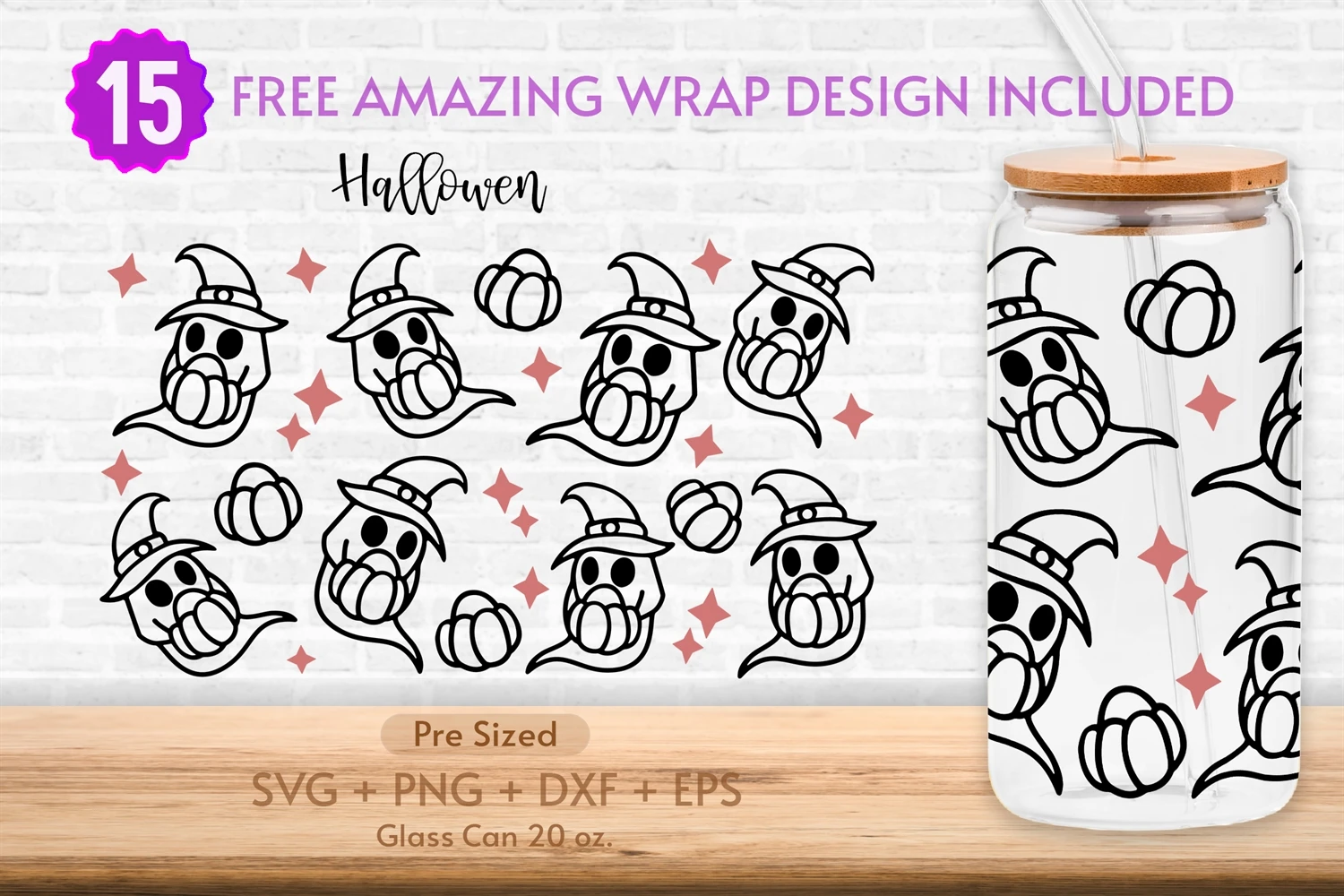 20oz Halloween Libbey Glass Can Svg, Pumpkin, Cute Boo,Ghost